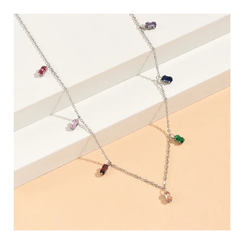Minimal and elegant rectangle pendant necklace made from 304 stainless steel. Features sparkling zircon inlay and 14K real gold PVD plating for a waterproof, non-tarnish finish. Designed with a Cuban/curb chain for a clean and polished everyday look.