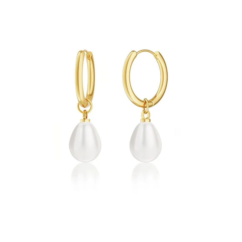 Elegant geometric drop earrings crafted from 304 stainless steel and finished with real 18K gold PVD plating for a waterproof, non-tarnish shine. Polished surface gives a modern, refined look, accented with a subtle pearl detail. Lightweight and suitable for all seasons, ideal for weekend and beach styling.