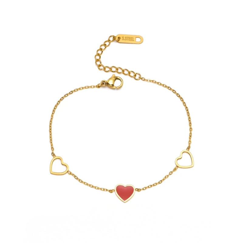 DELIA 304 STAINLESS STEEL 18K GOLD PVD PLATED ROUND HEART FLOWER BRACELET