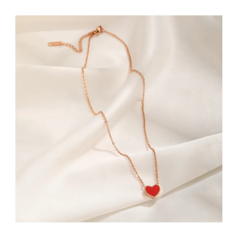 Sweet and feminine heart-shaped pendant necklace made from stainless steel with acrylic detailing. Finished with K gold PVD plating for a waterproof, non-tarnish shine. A charming accessory ideal for date outfits and daily romantic styling.