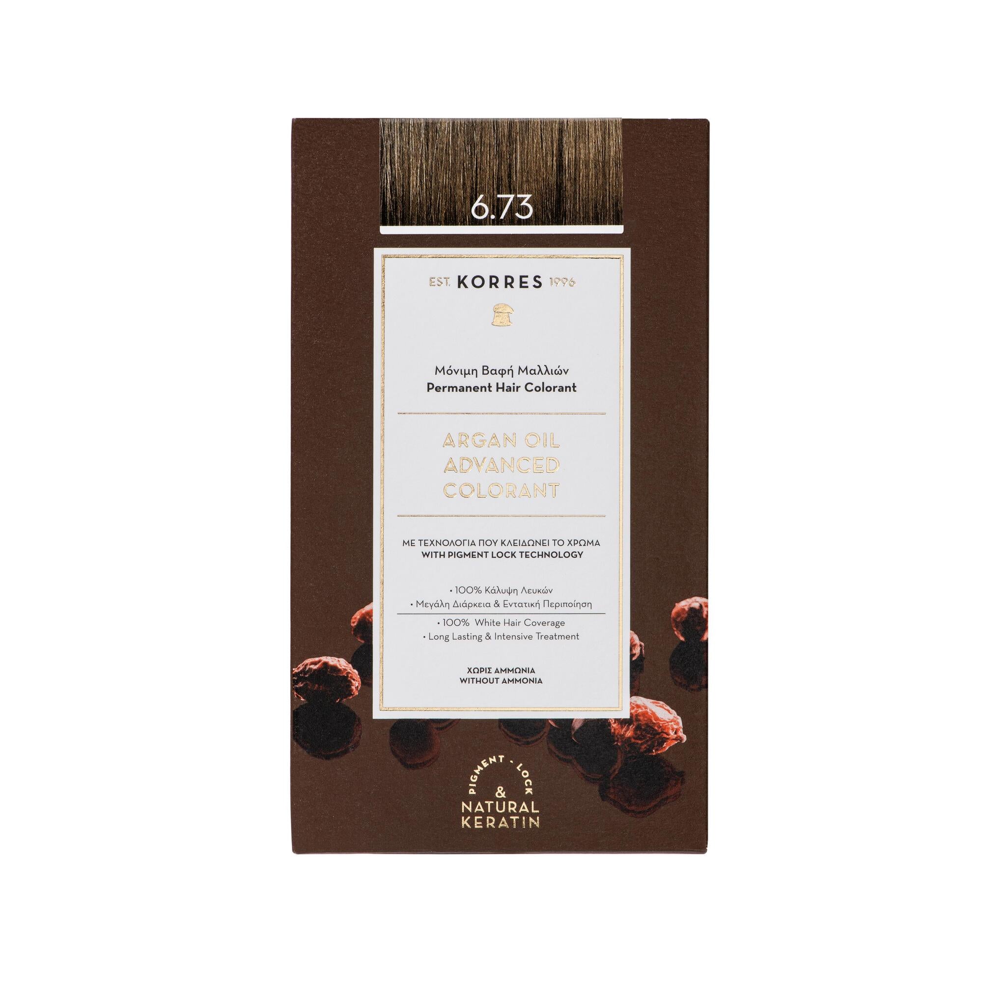 KORRES Argan Oil Advanced Colorant 6.73 Golden Cocoa ensures radiant, long-lasting color with a nourishing formula that keeps your hair healthy and vibrant with every use