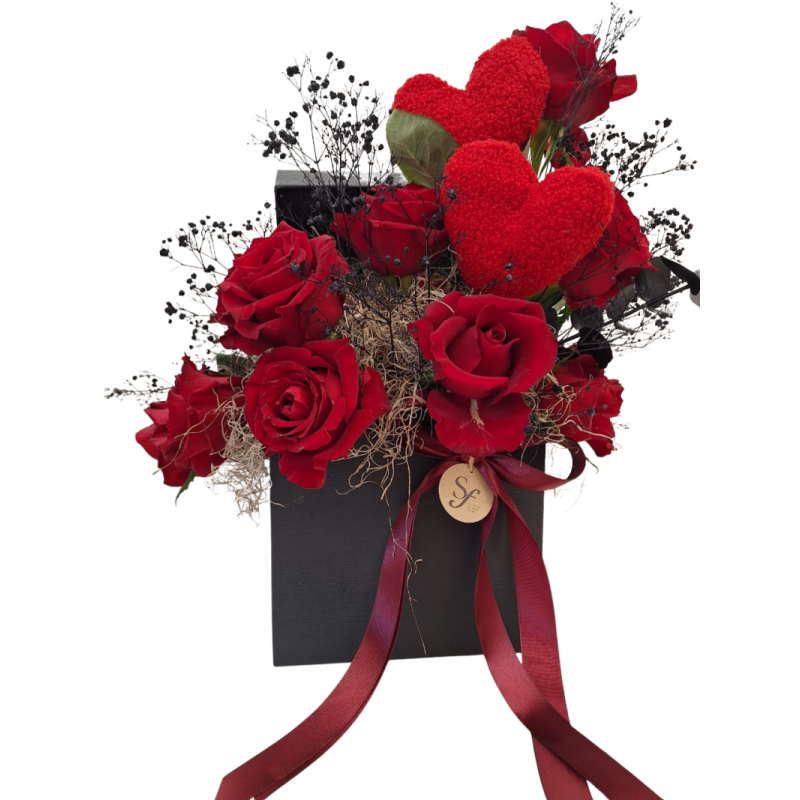 The arrangement measures 45 × 45 cm, making it a standout centrepiece for any space. Perfect for Valentine’s Day, anniversaries, or any moment you want to make unforgettable.
